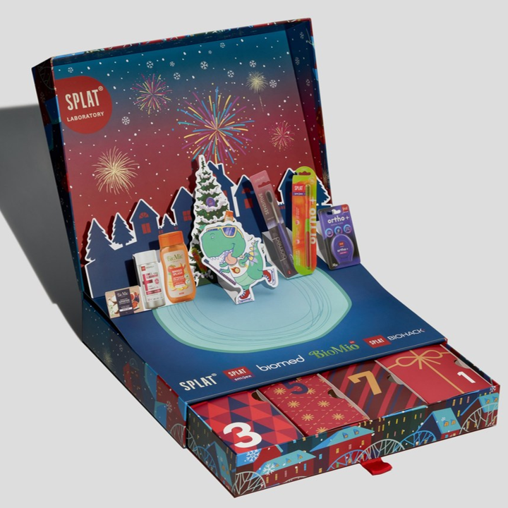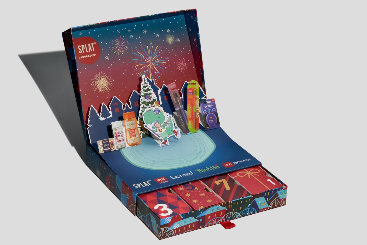 Для бренда SPLAT мы уже несколько лет создаем новогодние адвент-календари, которые стали традицией бренда.